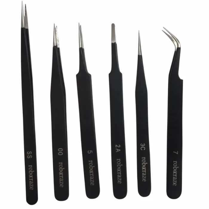 The set includes six unique tip styles to support various professional applications. From ultra-fine tips for micro-components to flat tips for general gripping, this set has you covered.