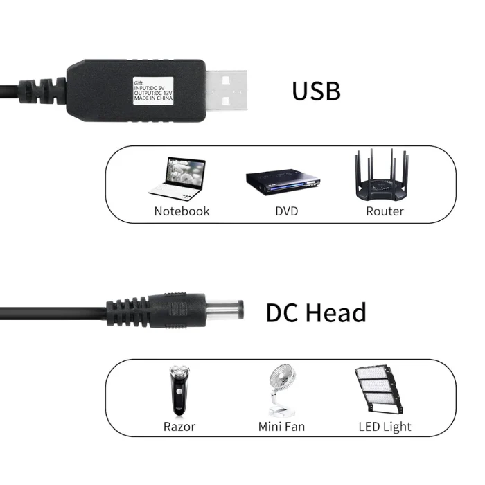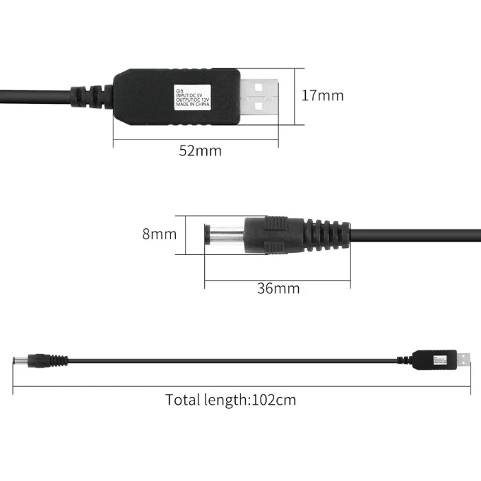 USB Booster Cable is a compact, high-performance step-up voltage converter designed to boost a standard 5V USB power source to 9V or 12V output, making it an essential accessory for electronics hobbyists, DIY developers, and professionals. Whether you are working on embedded systems, routers, sensors, or small motor-driven devices, this booster cable ensures stable, efficient, and reliable power delivery directly from a USB port or power bank.